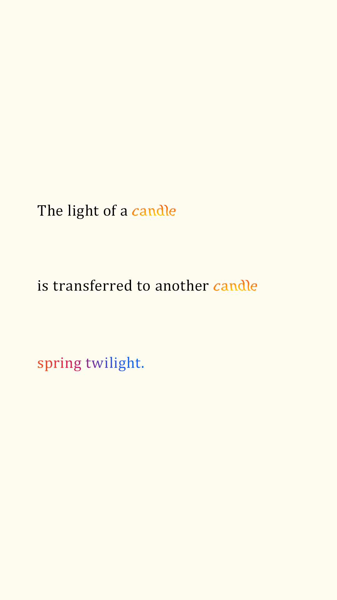 This pass featured a rather basic drag-and-drop interaction in which each letter of "candle" from the first stanza needed to be transferred to each letter of "candle" in the second stanza. I completed this experience in a relatively short amount of time, and it gave me an idea of how far my current Rive skills might take me for future passes.