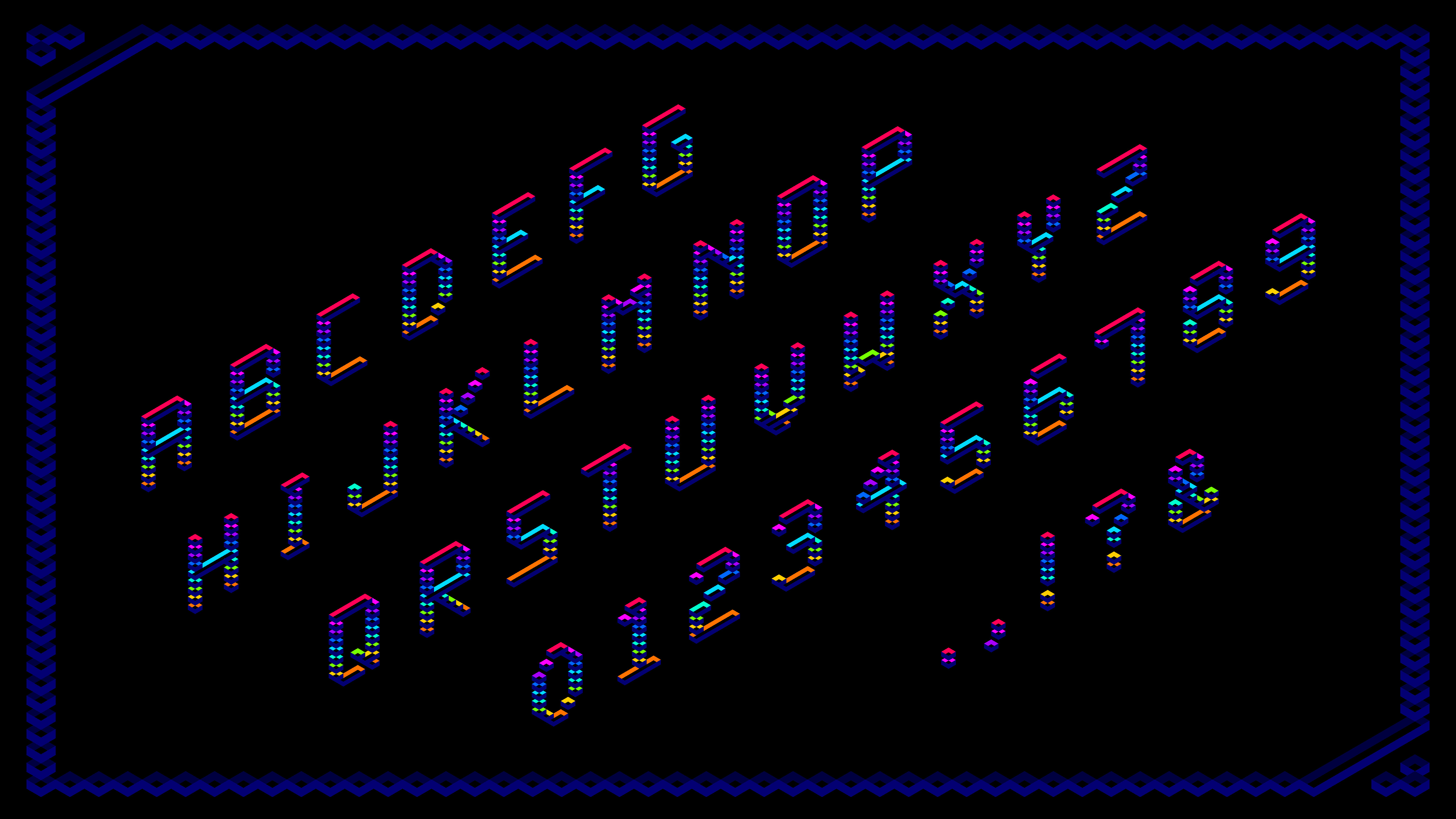 I continued to make small modifications to each character to make them more and more readable and cohesive. To test the legibility, I wrote out some phrases in different orientations. I was also tweaking the color palette until the very last revision, eventually arriving at a system that could incorporate several different coloring styles for my typeface.